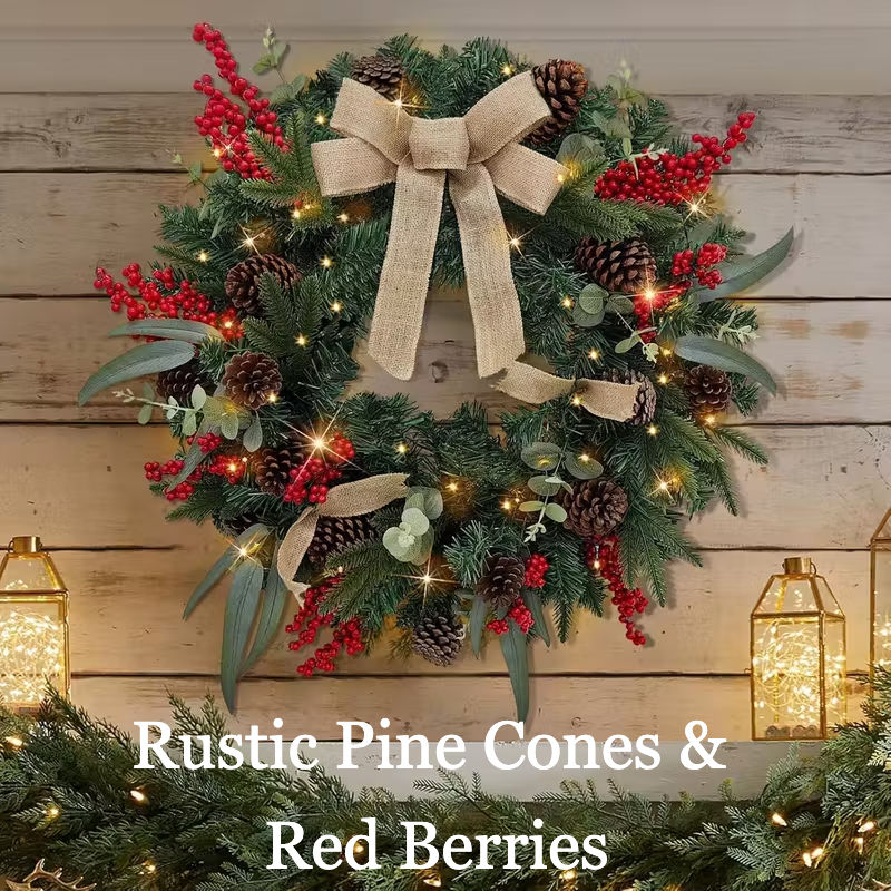 60cm Pre-Lit Christmas Wreath with Cones & Berries